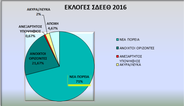 Συνολικά ψήφισαν 286 συνάδελφοι, εκ των οποίων 3 ψηφοδέλτια ήταν άκυρα και3 λευκά.